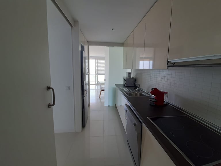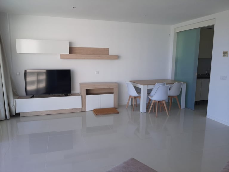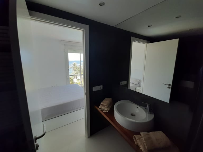 The beach is just a few steps away, as well as all the services you may need to enjoy a comfortable lifestyle: promenade, sports center with swimming pool and gym, pedestrian streets with parks and playgrounds, beach restaurants, terraces, supermarkets, health center, pharmacies and also educational centers. In the green area in front of the building and before the beach there is even an outdoor calisthenics gym that can be used all year round. The airport and Ibiza town are only 5 minutes away by car.