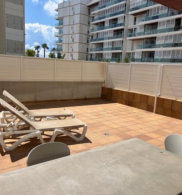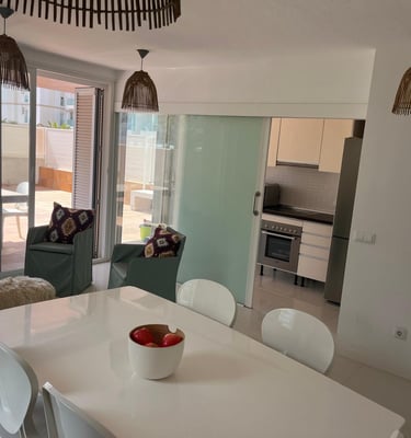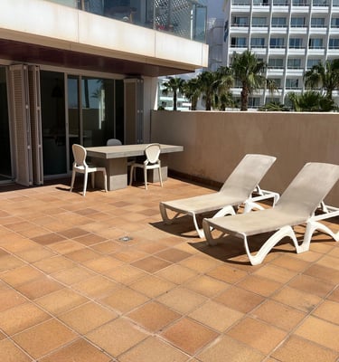 This spacious 3-bedroom, 2-bathroom apartment is located in Playa d'en Bossa, one of the most sought-after areas of Ibiza. Set within a front-line complex, the beach is literally at your doorstep, offering the true Mediterranean lifestyle just steps from home.