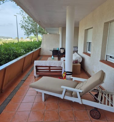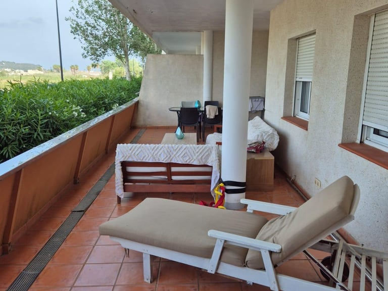 The property has a built area of 116.59 m² and a spacious private terrace of 35.76 m², featuring a chill-out area and outdoor dining space—perfect for enjoying the Mediterranean climate.