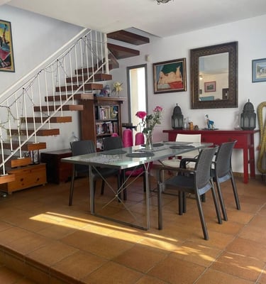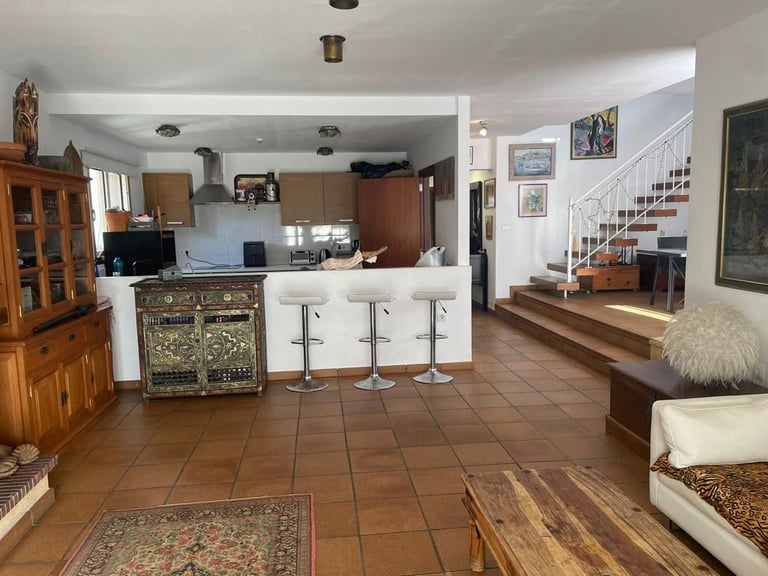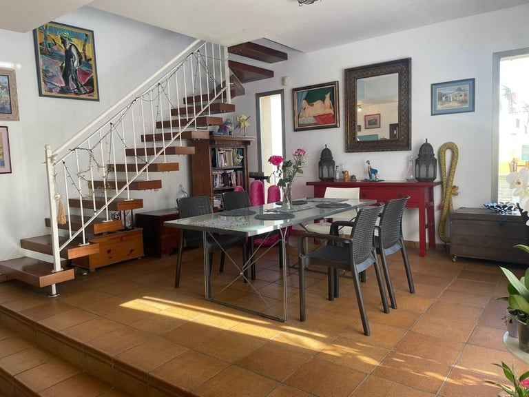 Upstairs, the master bedroom offers a true retreat, complete with an en-suite bathroom for added privacy and luxury. Step outside to the rooftop terrace, where you'll be treated to panoramic views of Ibiza’s Old Town and awe-inspiring sunsets - perfect for enjoying the golden hour or entertaining guests as the sun dips below the horizon.