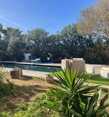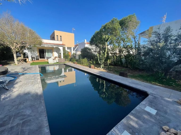 The expansive, sun-soaked garden and private pool area create the ideal setting for outdoor entertaining, family gatherings, or simply relaxing in the warmth of Ibiza’s Mediterranean climate. The property offers endless potential for customisation, whether you wish to add a lush garden, outdoor kitchen, or additional amenities.